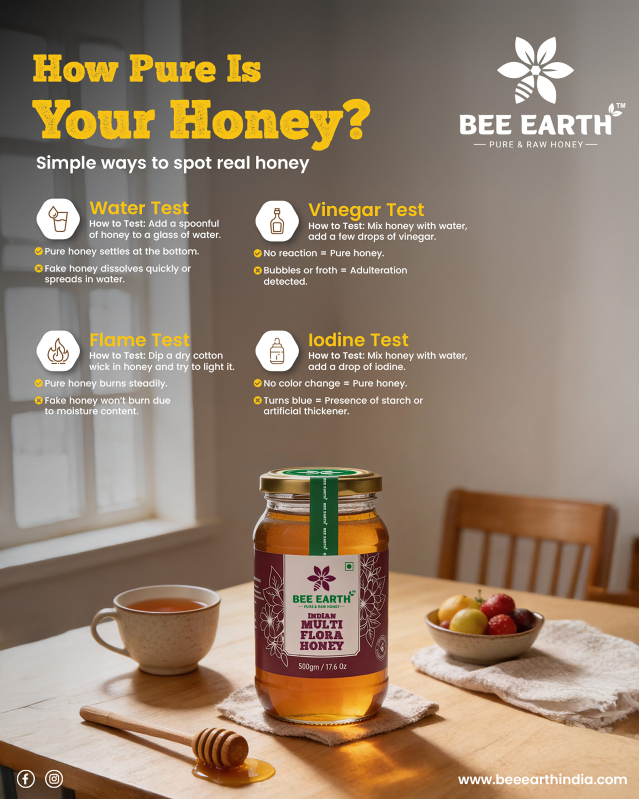 Every batch of Bee Earth honey is carefully tested — from hive to jar — to ensure unmatched purity, authenticity, and taste.